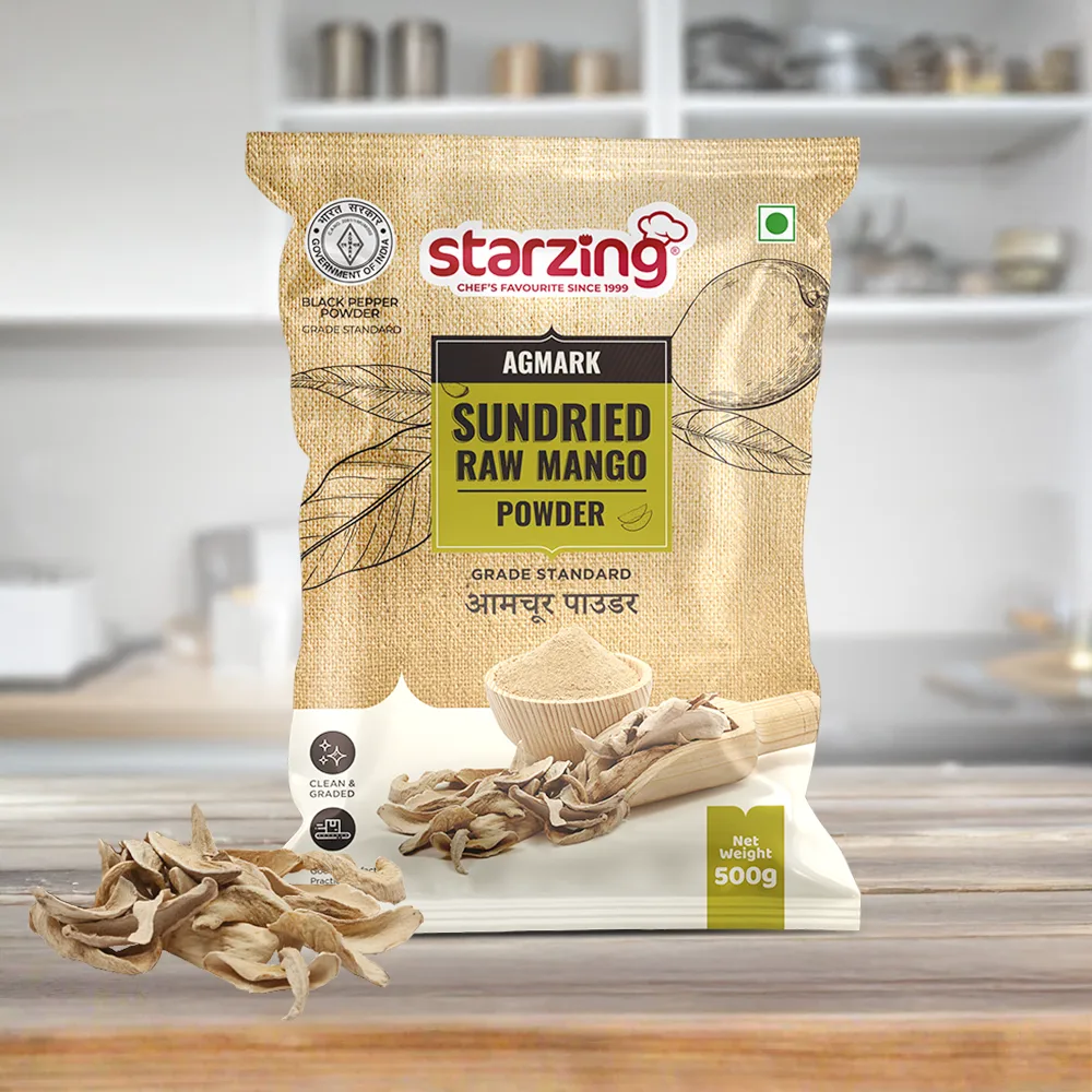 Dry mango powder also referred to as Amchur, is a fruity spice powder made from dried unripe green mangoes and is used as a citrusy seasoning. It is produced in India and is used to flavor foods and add the nutritional benefits of mangoes when the fresh fruit is out of season.