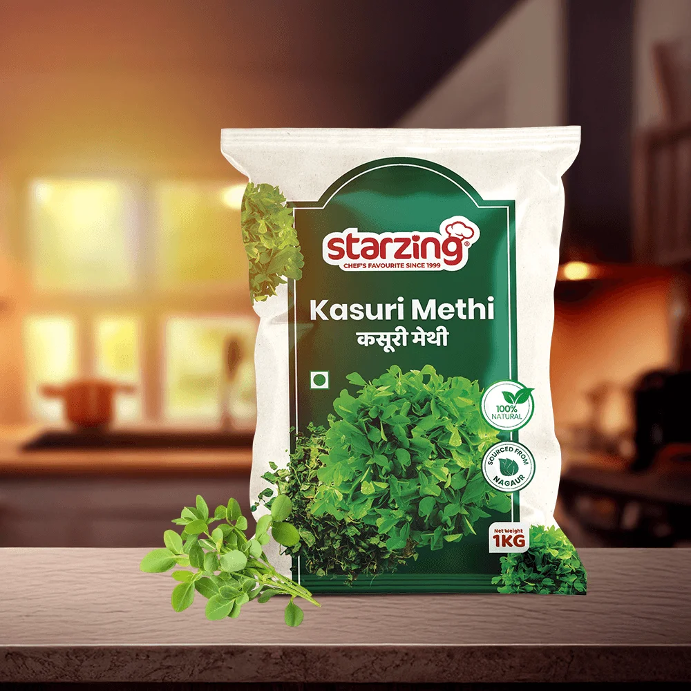 Starzing Kasuri Methi is premium-quality dried fenugreek leaves that elevate the taste, texture, and aroma of Indian dishes. Sun-dried and handpicked with care, it adds a rich, slightly bitter herbaceous flavor to curries, vegetables, and more.
